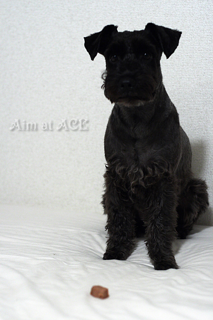 下の写真は「よし!」の合図でクンクンペロペロして食べるエース