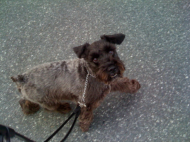 散歩に出てすぐは興奮気味のエースもしばらく歩くと落ち着いてくるそうすっとこうやって俺を見上げてくる
