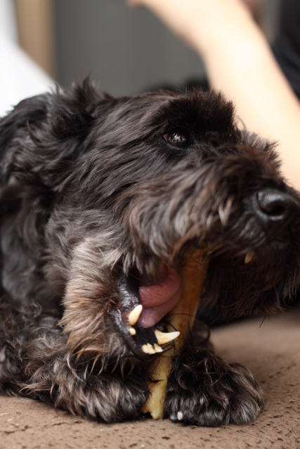 うだるような暑さでも野性を取り戻すことを忘れないミニチュアシュナウザーエース