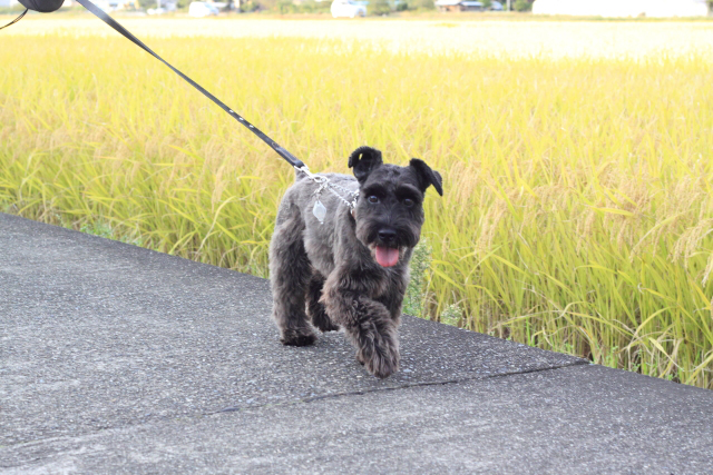 彼女の実家近くを散歩なエース 収穫直前の稲穂がまぶしく輝く散歩道