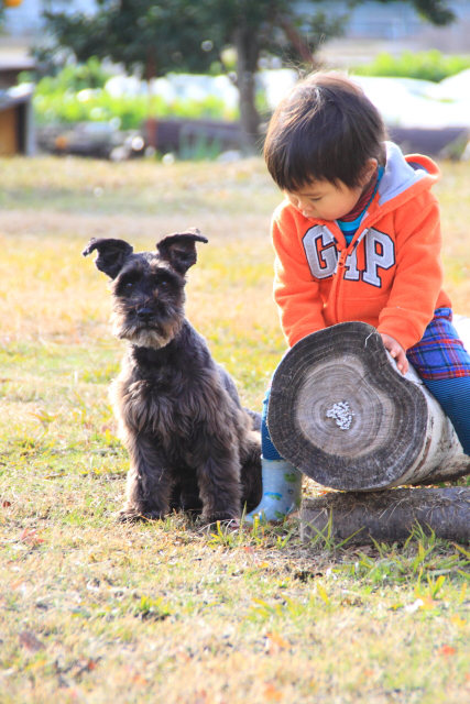 外庭には何の予定もない丸太が横たわっている それに乗って遊ぶセガレとエースを撮ってみた ほんのちょっぴりエースのカラダが離れようとしてるのは気のせいだろうか?
