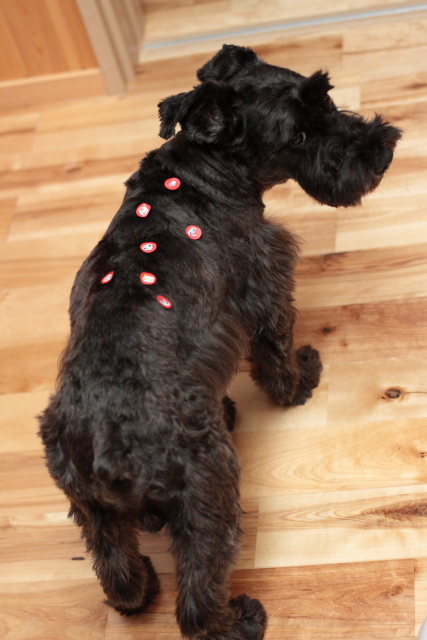 帰るとエースがこんなことに… パッと見ドッと柄の服着てんのかと思った